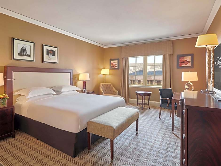 Fairmont King Rooms are beautifully decorated with hints of traditional Scottish tartan. These rooms have a modern bathroom with a large bathtub and spacious walk-in shower.